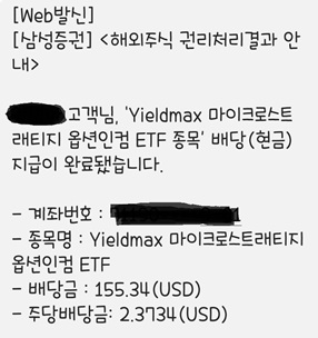 매주 증권사에서 배당 입금 알림 메세지를 보내줘요.