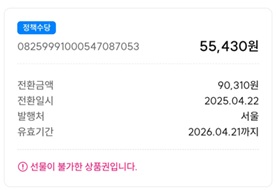 - 전환 완료되면 서울페이머니에 바로 반영됨