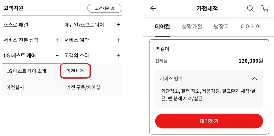 예약: LG전자 홈페이지 (LG전자 앱에서도 가능) 또는 고객센터